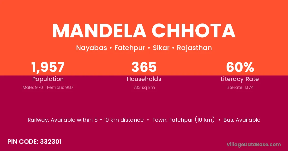 Fatehpur (10 km) is the nearest town to Mandela Chhota village for major economic activities and is located approximately 10 km away.