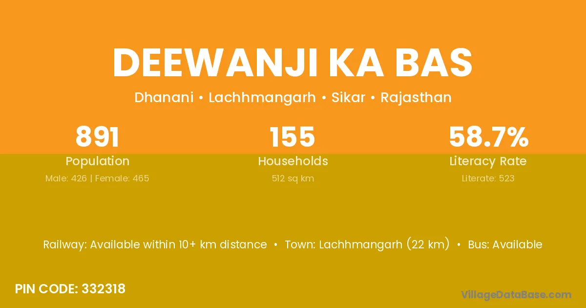 Deewanji Ka Bas village has a total population of 891 people, of which 426 are males and 465 are females.