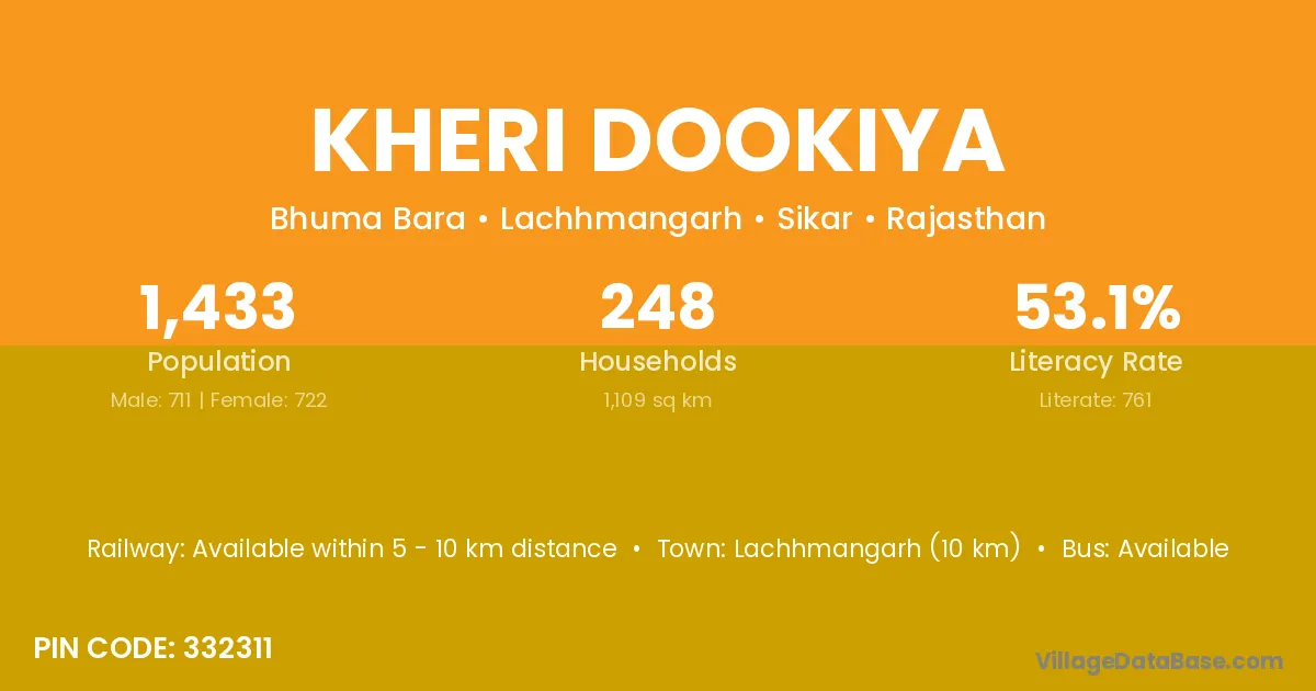 According to Census 2011 information, the village code of Kheri Dookiya village is 332311.