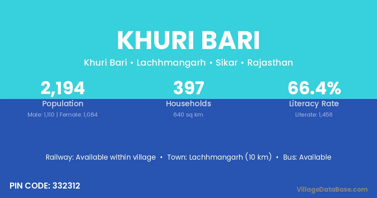 Lachhmangarh (10 km) is the nearest town to Khuri Bari village for major economic activities and is located approximately 10 km away.