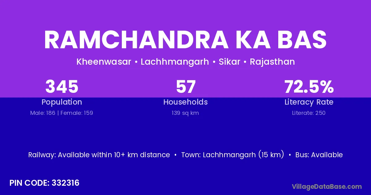 Ramchandra Ka Bas village has a total population of 345 people, of which 186 are males and 159 are females.