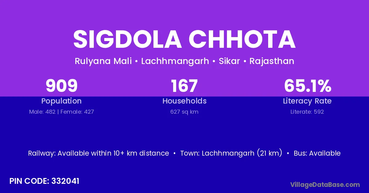 According to Census 2011 information, the village code of Sigdola Chhota village is 332041.