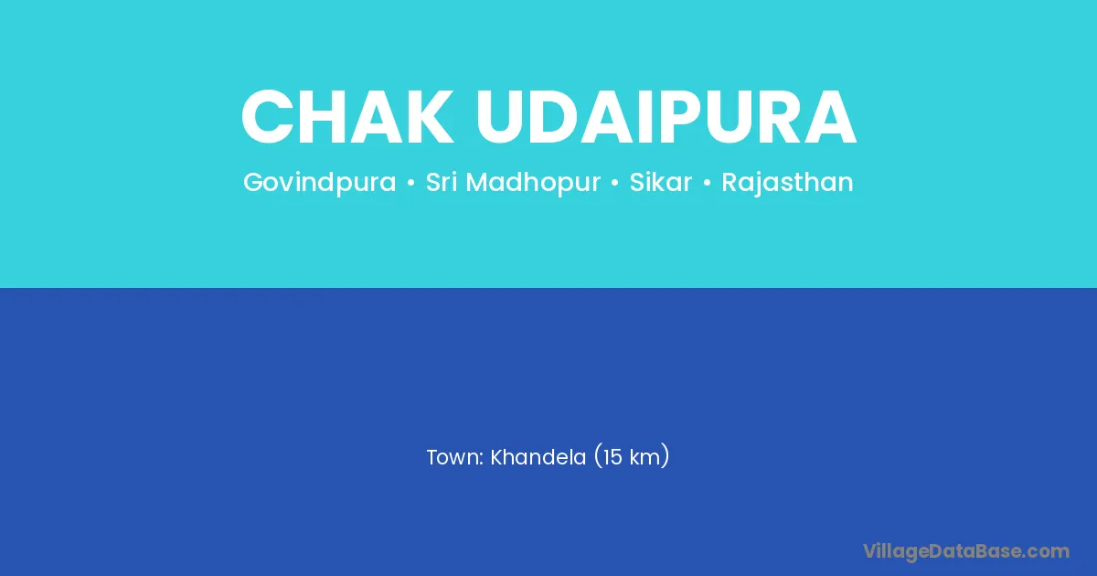 Khandela (15 km) is the nearest town to Chak Udaipura village for major economic activities and is located approximately 15 km away.