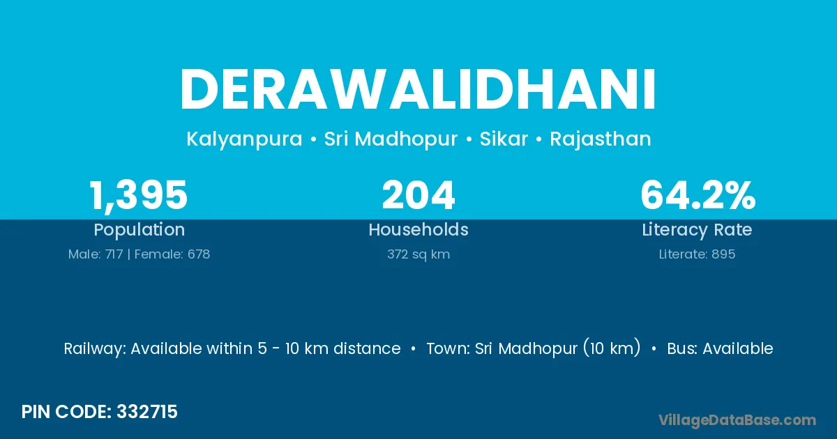 Sri Madhopur (10 km) is the nearest town to Derawalidhani village for major economic activities and is located approximately 10 km away.