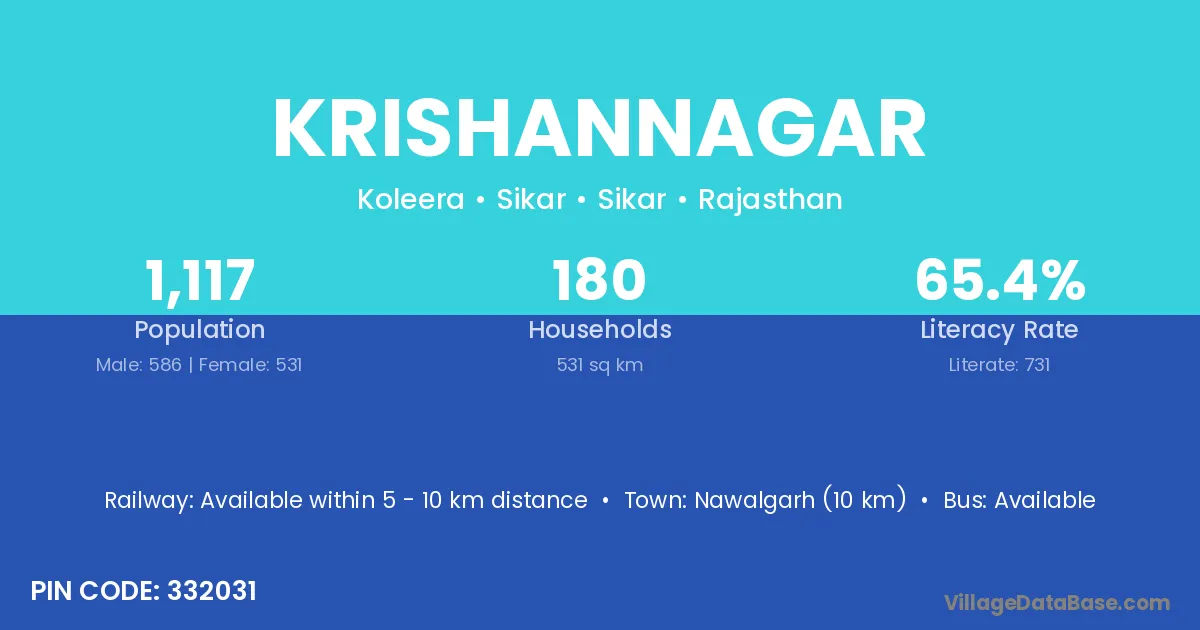 Sri Madhopur (13 km) is the nearest town to Krishannagar village for major economic activities and is located approximately 13 km away.