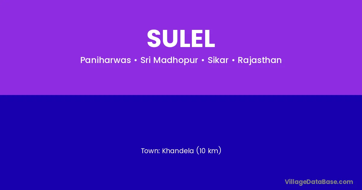Khandela (10 km) is the nearest town to Sulel village for major economic activities and is located approximately 10 km away.