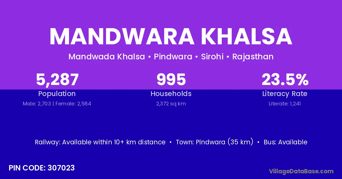 Pindwara (35 km) is the nearest town to Mandwara Khalsa village for major economic activities and is located approximately 35 km away.