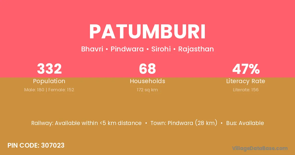 Patumburi village is located in the Pindwara Tehsil of the Sirohi district in Rajasthan .