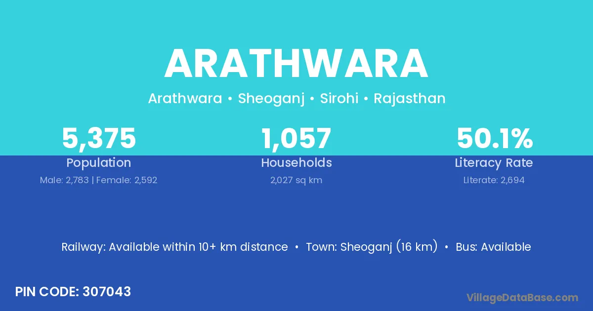 Sheoganj (16 km) is the nearest town to Arathwara village for major economic activities and is located approximately 16 km away.