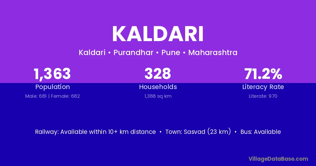 Kaldari village has a total population of 1,293 people, of which 655 are males and 638 are females.