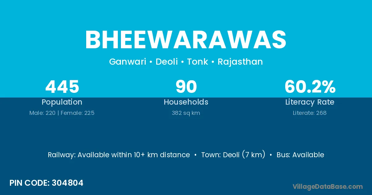 Deoli (7 km) is the nearest town to Bheewarawas village for major economic activities and is located approximately 7 km away.
