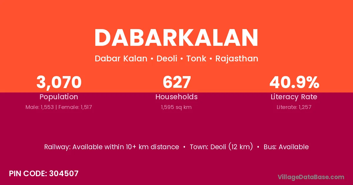 Deoli (12 km) is the nearest town to Dabarkalan village for major economic activities and is located approximately 12 km away.