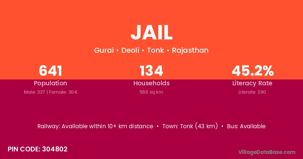 Tonk (43 km) is the nearest town to Jail village for major economic activities and is located approximately 43 km away.