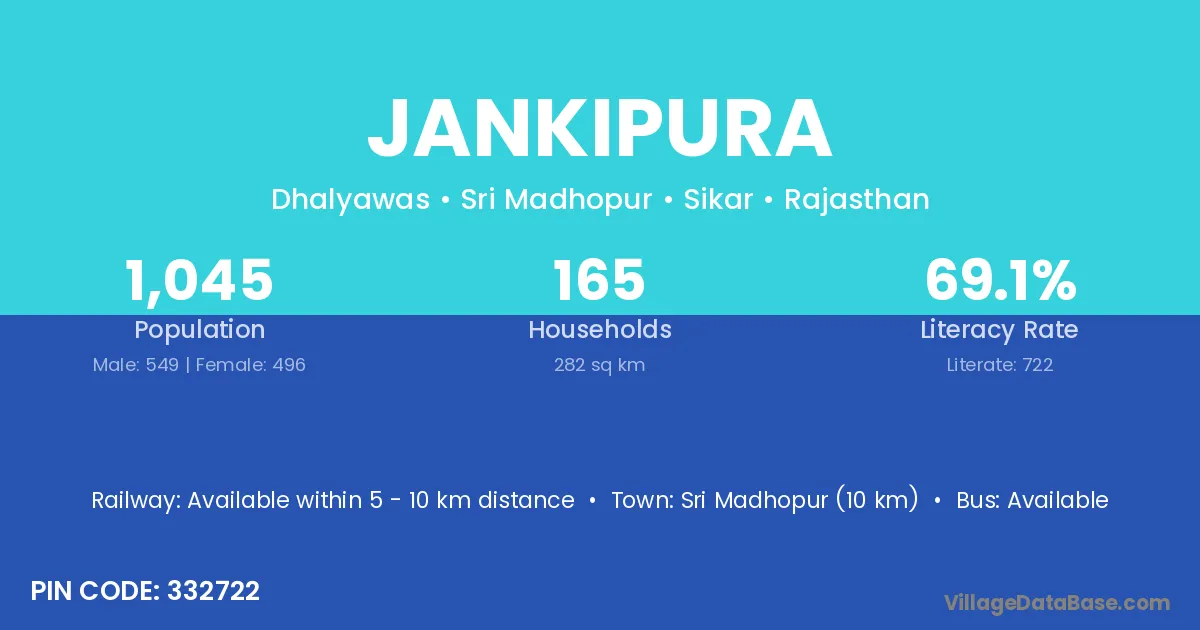 Malpura (17 km) is the nearest town to Jankipura village for major economic activities and is located approximately 17 km away.