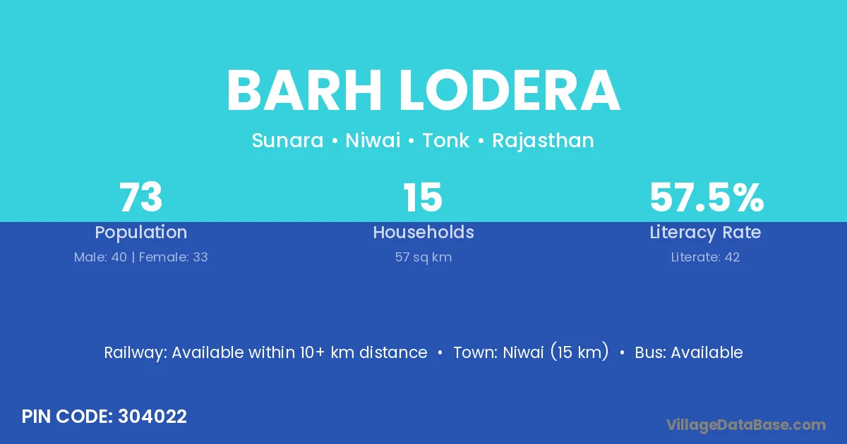 Niwai (15 km) is the nearest town to Barh Lodera village for major economic activities and is located approximately 15 km away.