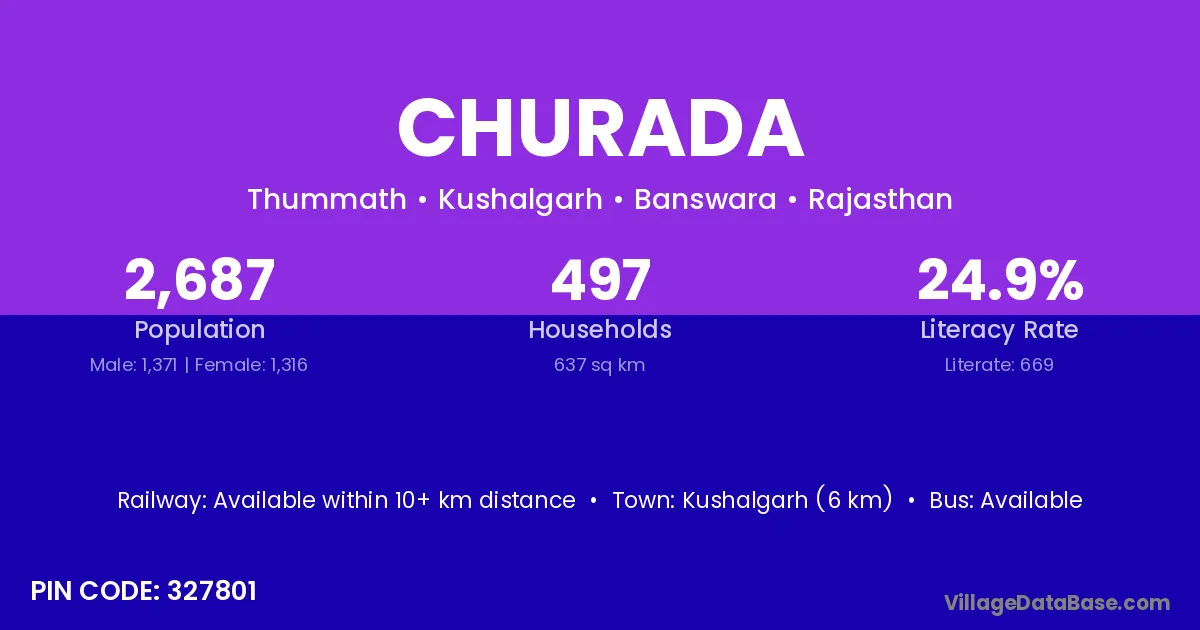 Niwai (28 km) is the nearest town to Churada village for major economic activities and is located approximately 28 km away.
