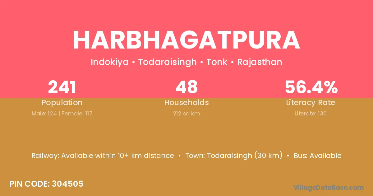 Niwai (24 km) is the nearest town to Harbhagatpura village for major economic activities and is located approximately 24 km away.