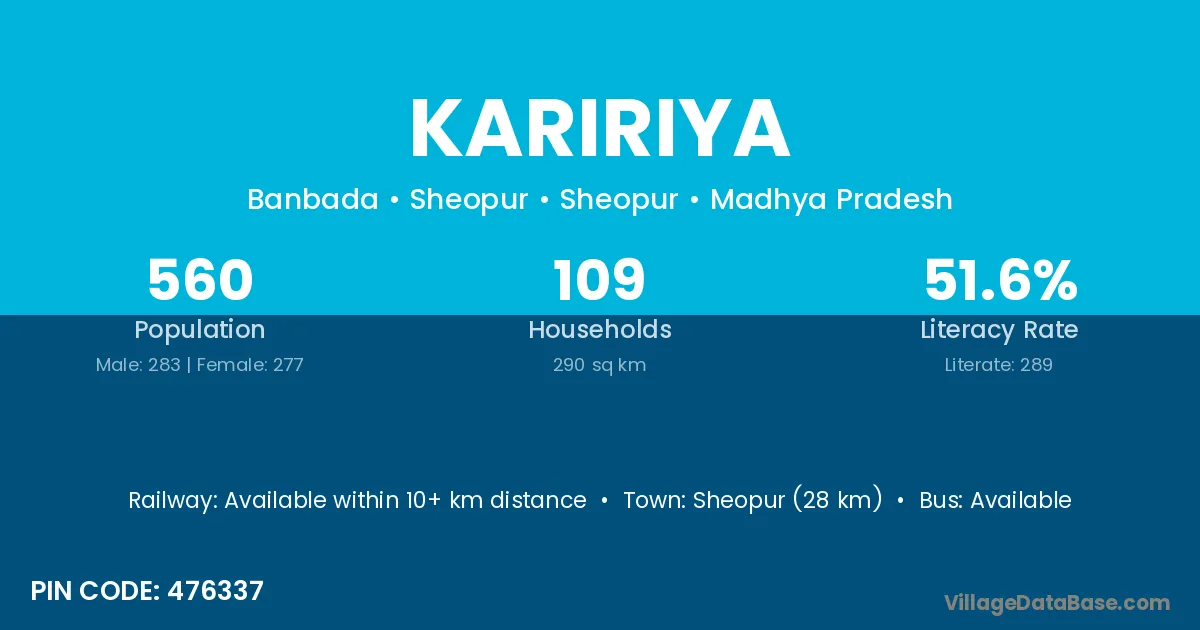 Niwai (15 km) is the nearest town to Kaririya village for major economic activities and is located approximately 15 km away.