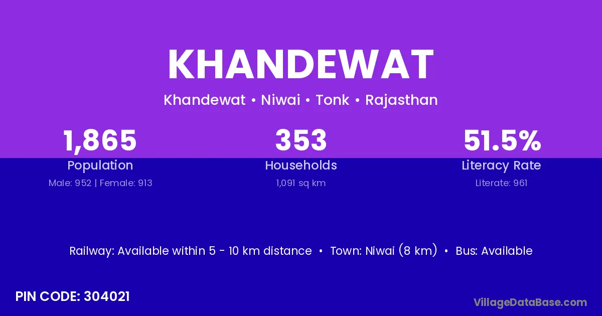 Niwai (8 km) is the nearest town to Khandewat village for major economic activities and is located approximately 8 km away.