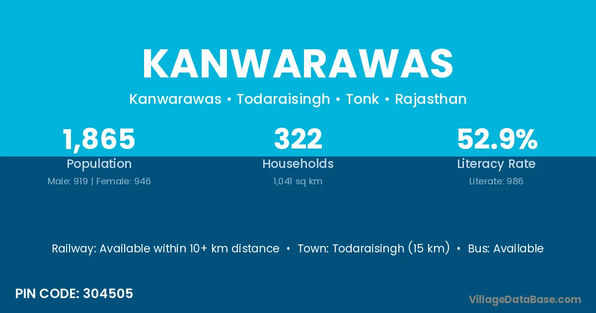 Kanwarawas village has a total population of 1,865 people, of which 919 are males and 946 are females.