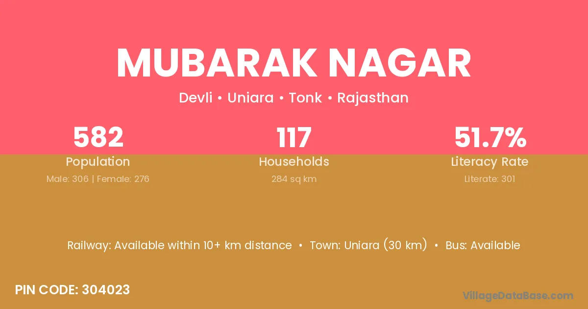 According to Census 2011 information, the village code of Mubarak Nagar village is 304023.