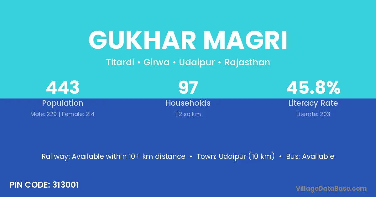 Gukhar Magri village has a total population of 443 people, of which 229 are males and 214 are females.