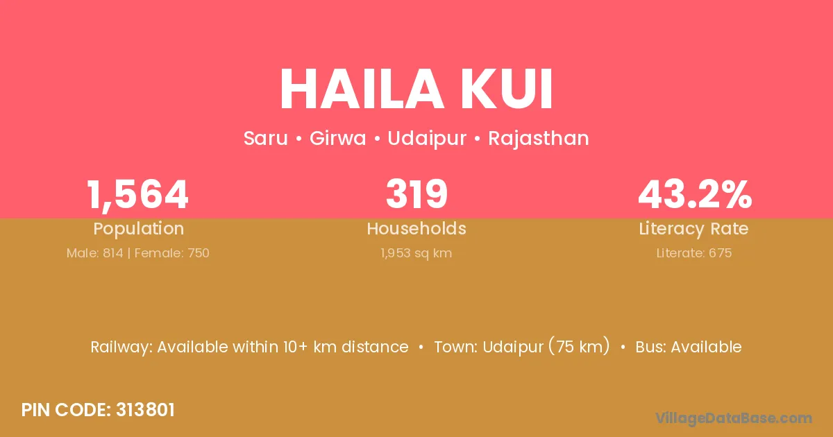 Udaipur (75 km) is the nearest town to Haila Kui village for major economic activities and is located approximately 75 km away.