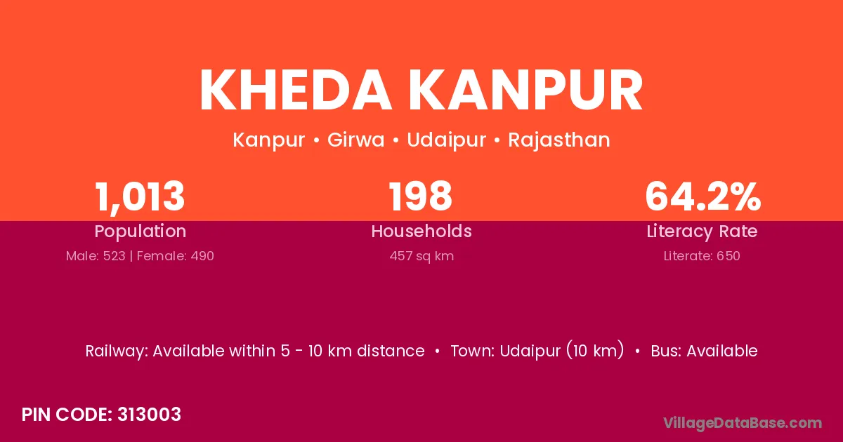 Kheda Kanpur village has a total population of 1,013 people, of which 523 are males and 490 are females.