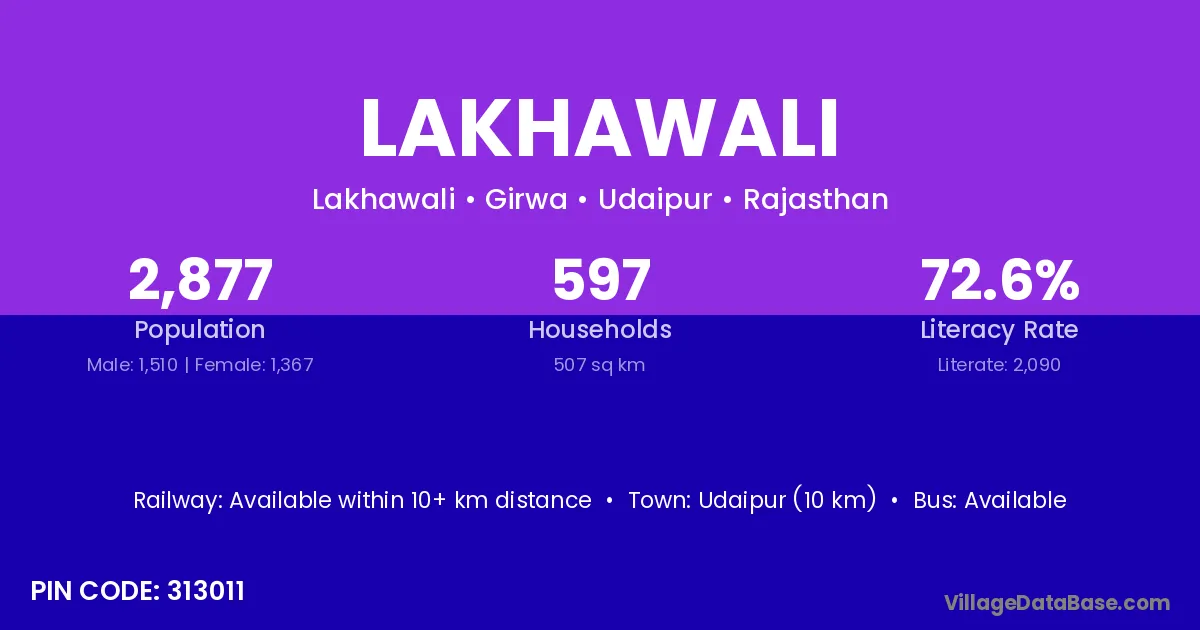 Udaipur (10 km) is the nearest town to Lakhawali village for major economic activities and is located approximately 10 km away.