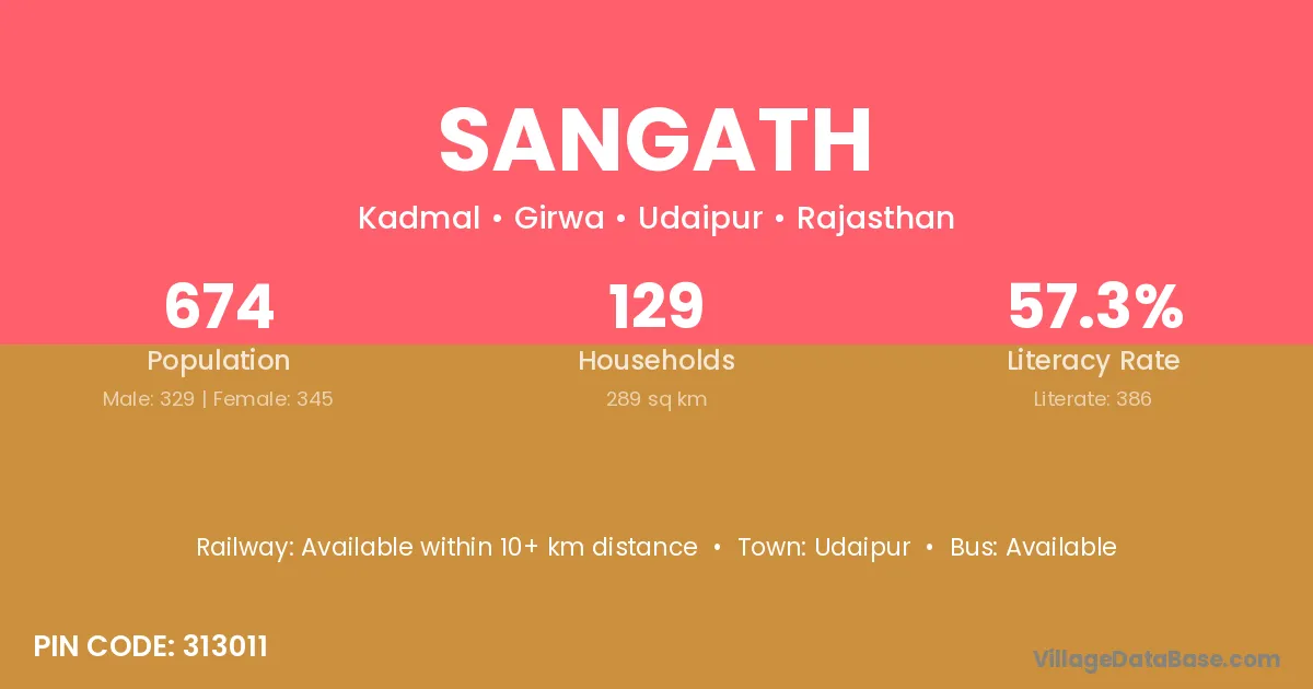 According to Census 2011 information, the village code of Sangath village is 313011.