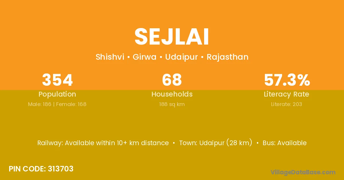 Udaipur (28 km) is the nearest town to Sejlai village for major economic activities and is located approximately 28 km away.