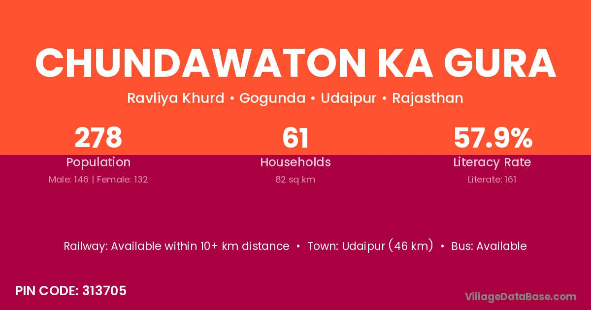 Chundawaton Ka Gura village has a total population of 278 people, of which 146 are males and 132 are females.