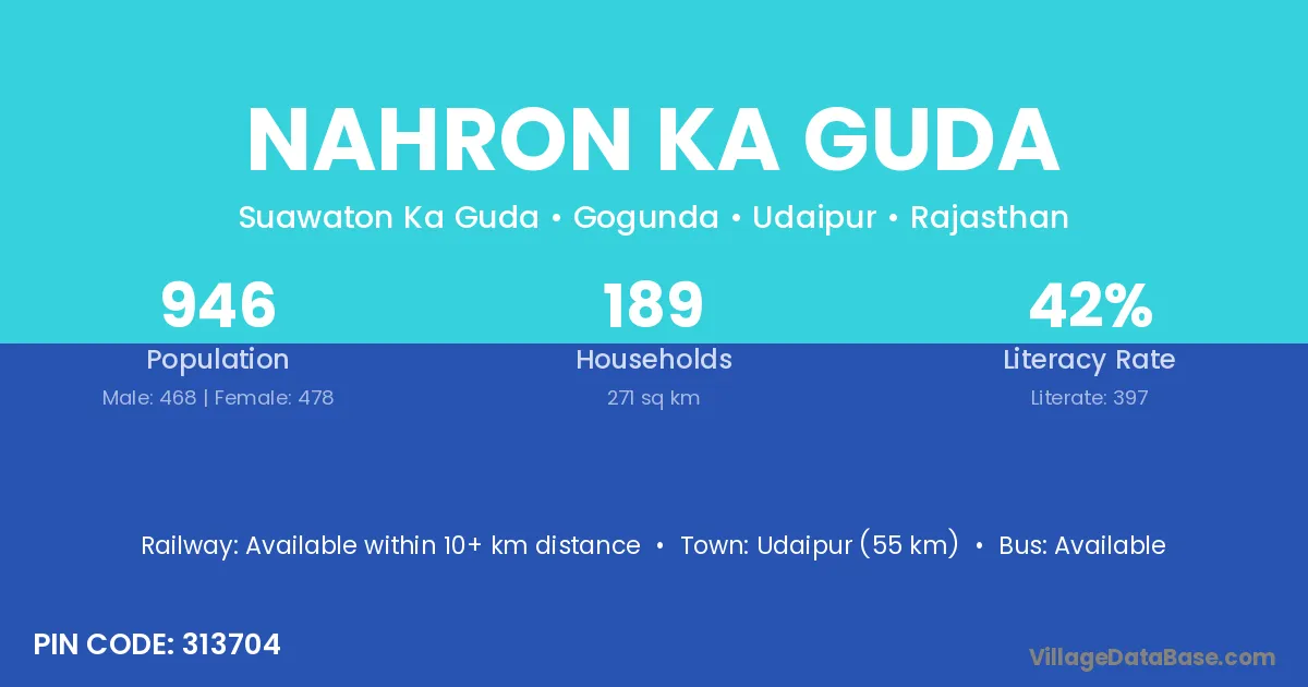 Nahron Ka Guda village has a total population of 946 people, of which 468 are males and 478 are females.