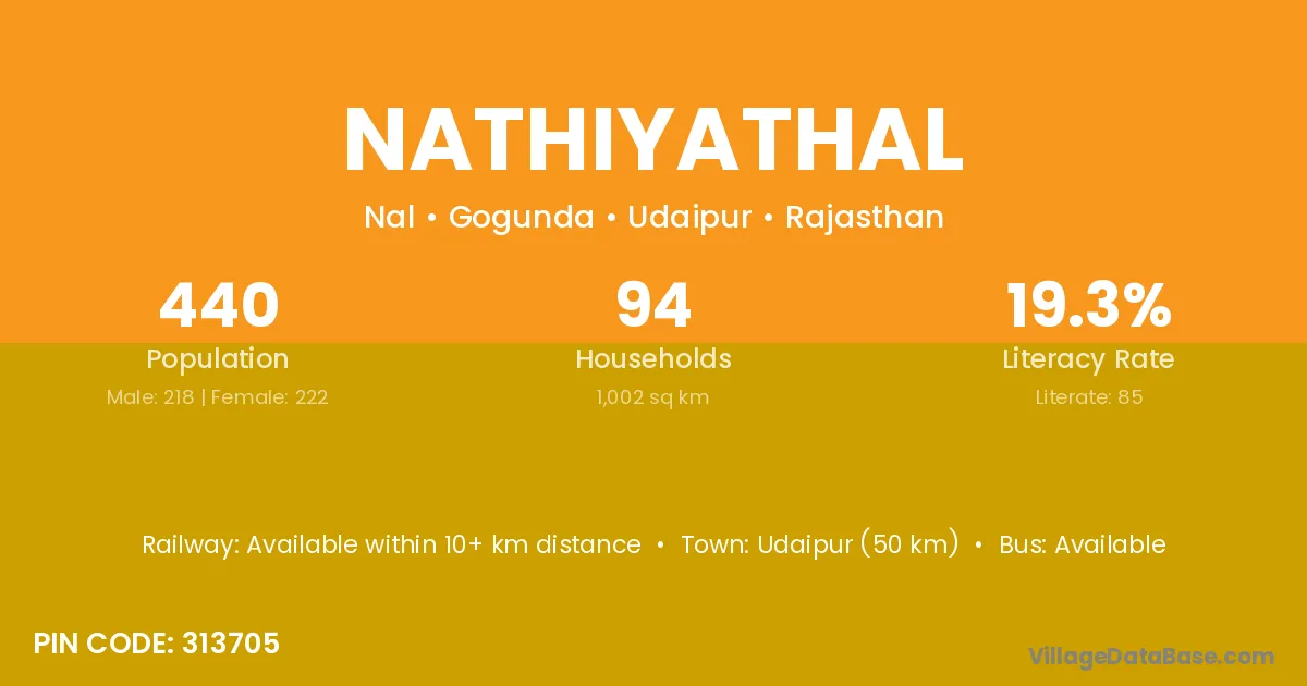 Nathiyathal village has a total population of 440 people, of which 218 are males and 222 are females.