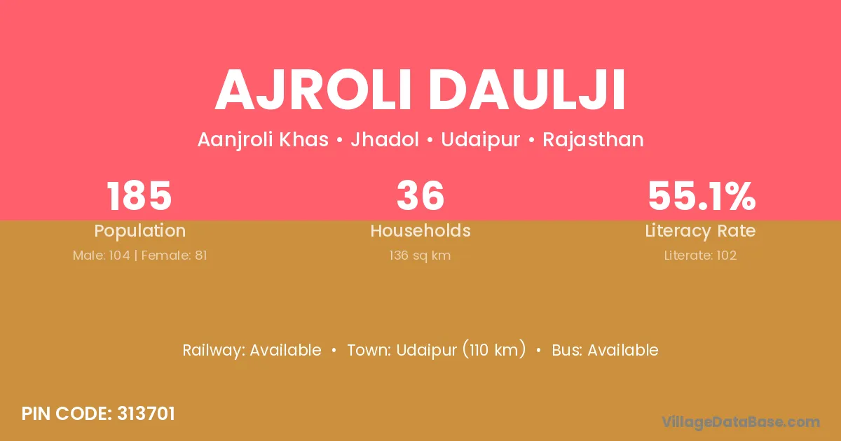 Ajroli Daulji village has a total population of 185 people, of which 104 are males and 81 are females.