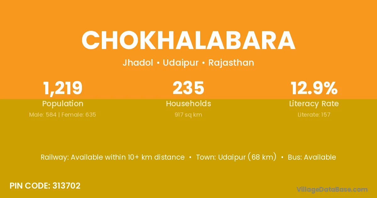 Chokhalabara village is located in the Jhadol Tehsil of the Udaipur district in Rajasthan .