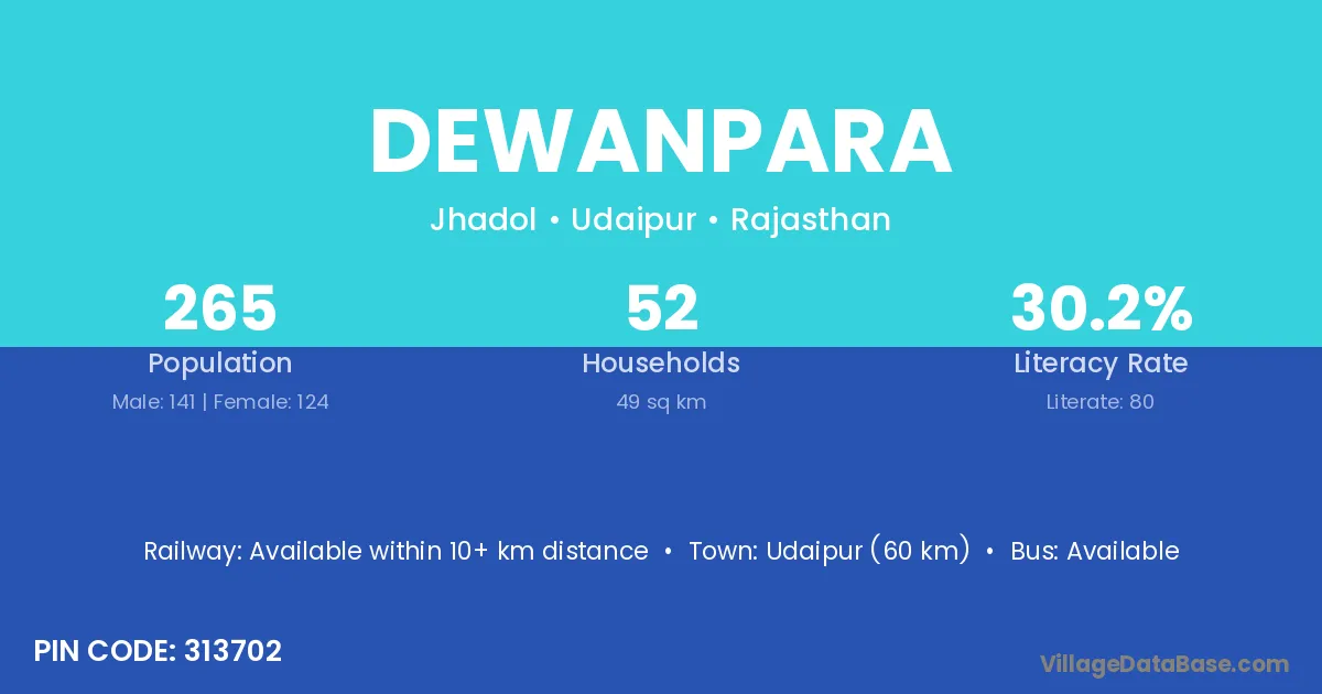 Dewanpara village has a total population of 265 people, of which 141 are males and 124 are females.