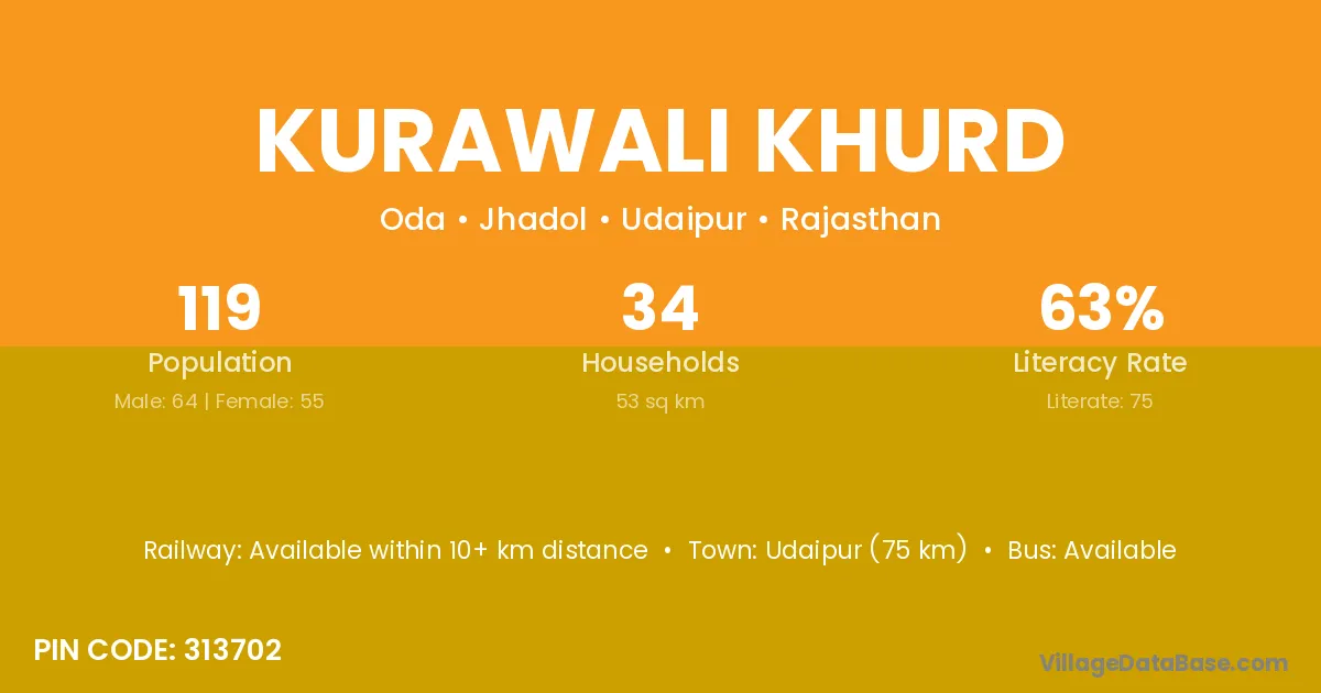 Kurawali Khurd village has a total population of 119 people, of which 64 are males and 55 are females.