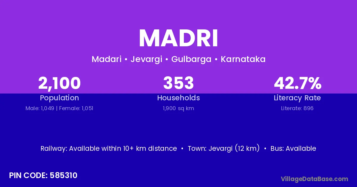 The literacy rate of Madri village is 54.98%. Male literacy stands at 63.11% and female literacy at 46.71%.