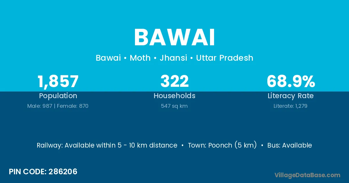 Bawai village has a total population of 474 people, of which 249 are males and 225 are females.