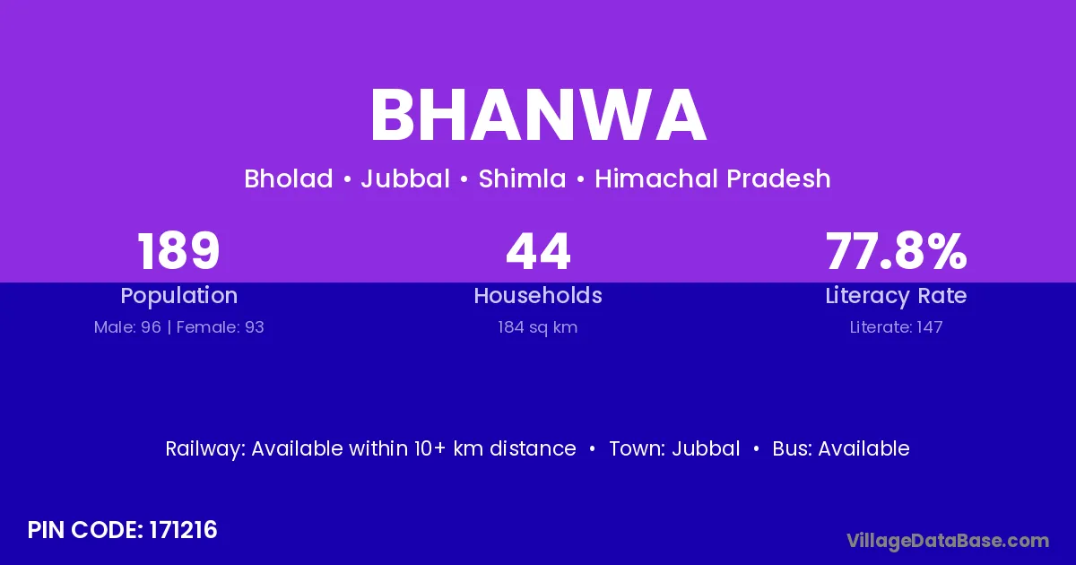 The literacy rate of Bhanwa village is 45.45%. Male literacy stands at 53.63% and female literacy at 38.49%.