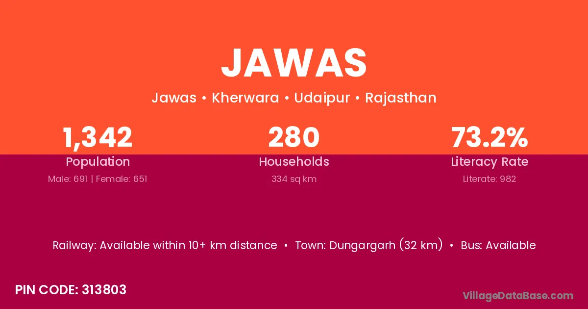Dungargarh (32 km) is the nearest town to Jawas village for major economic activities and is located approximately 32 km away.