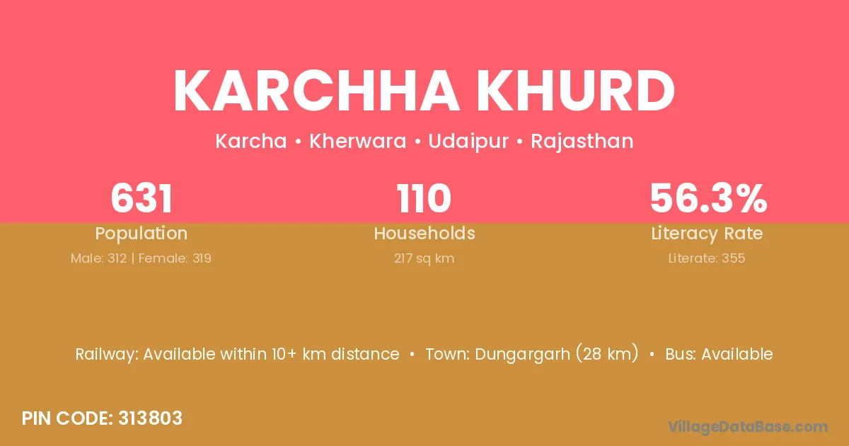 Karchha Khurd village has a total population of 631 people, of which 312 are males and 319 are females.