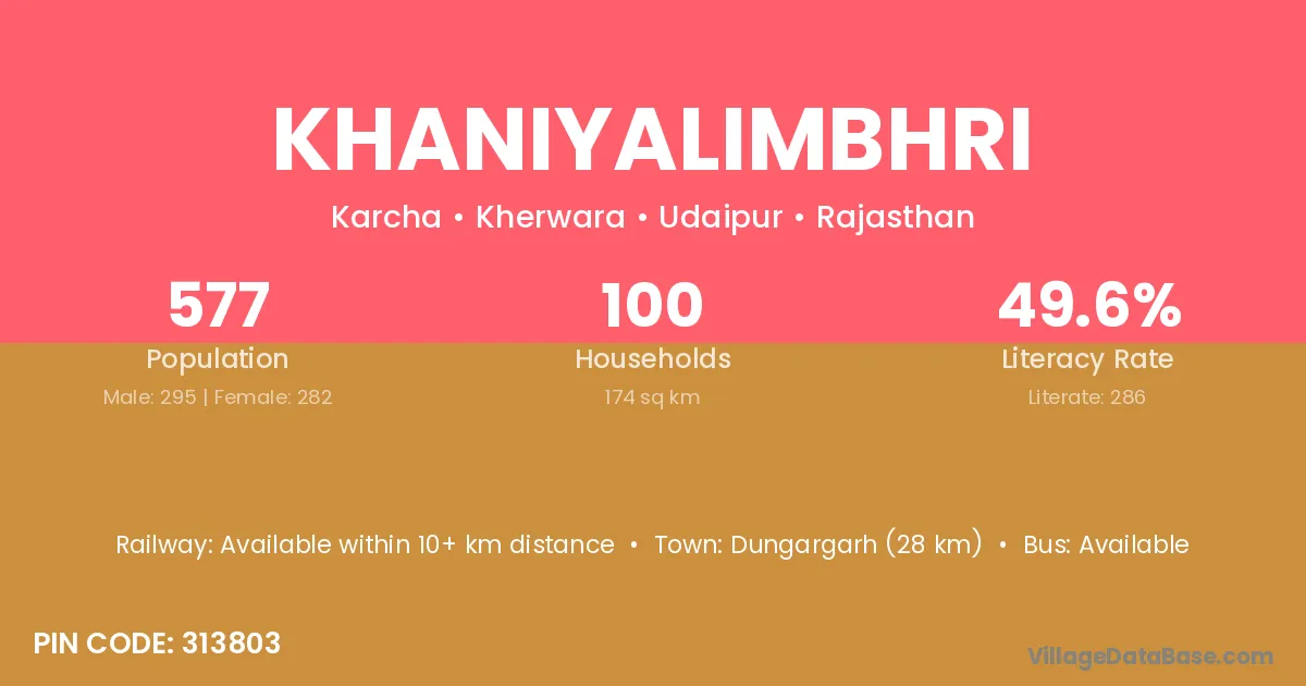 Dungargarh (28 km) is the nearest town to Khaniyalimbhri village for major economic activities and is located approximately 28 km away.