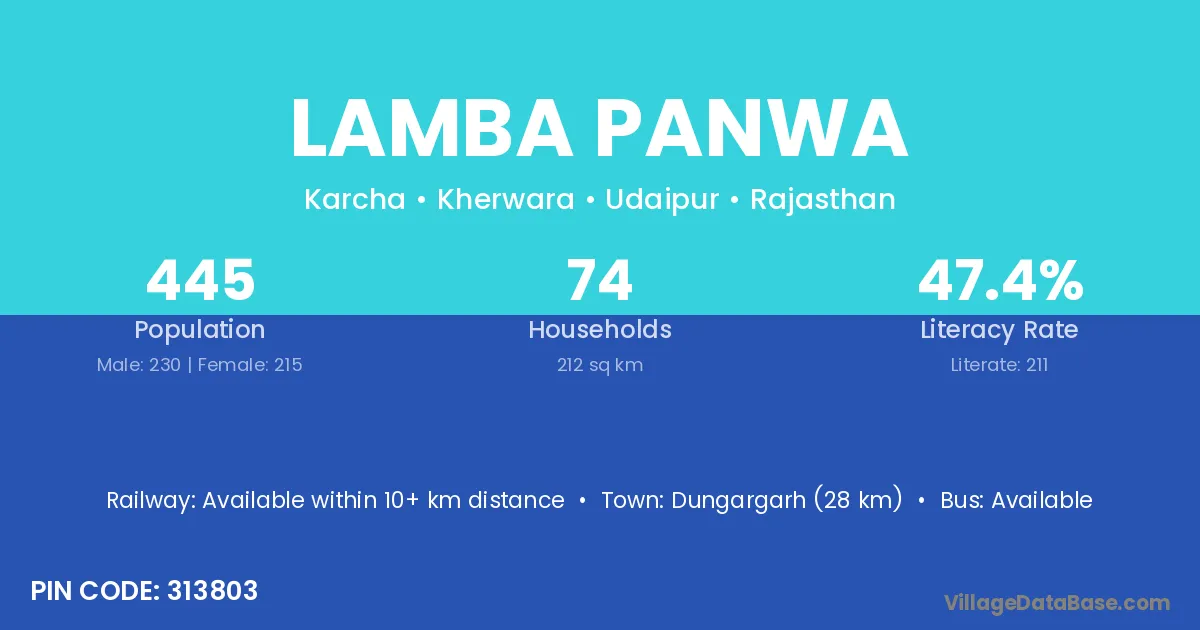 Lamba Panwa village has a total population of 445 people, of which 230 are males and 215 are females.
