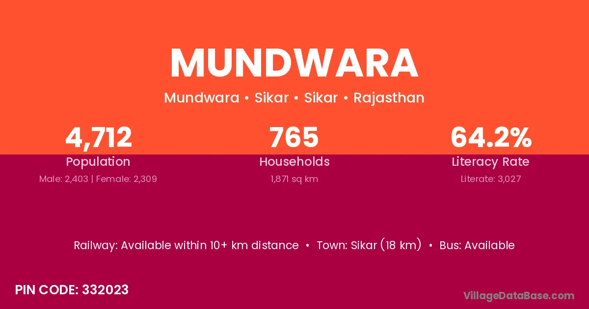 Mundwara village has a total population of 913 people, of which 474 are males and 439 are females.