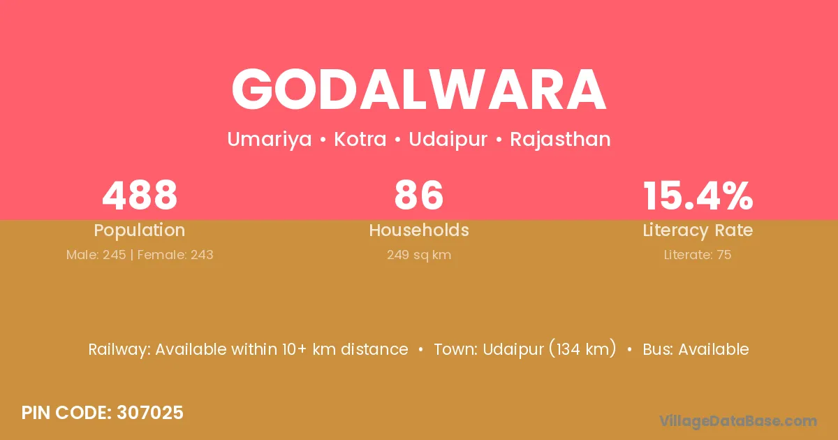 Godalwara village has a total population of 488 people, of which 245 are males and 243 are females.