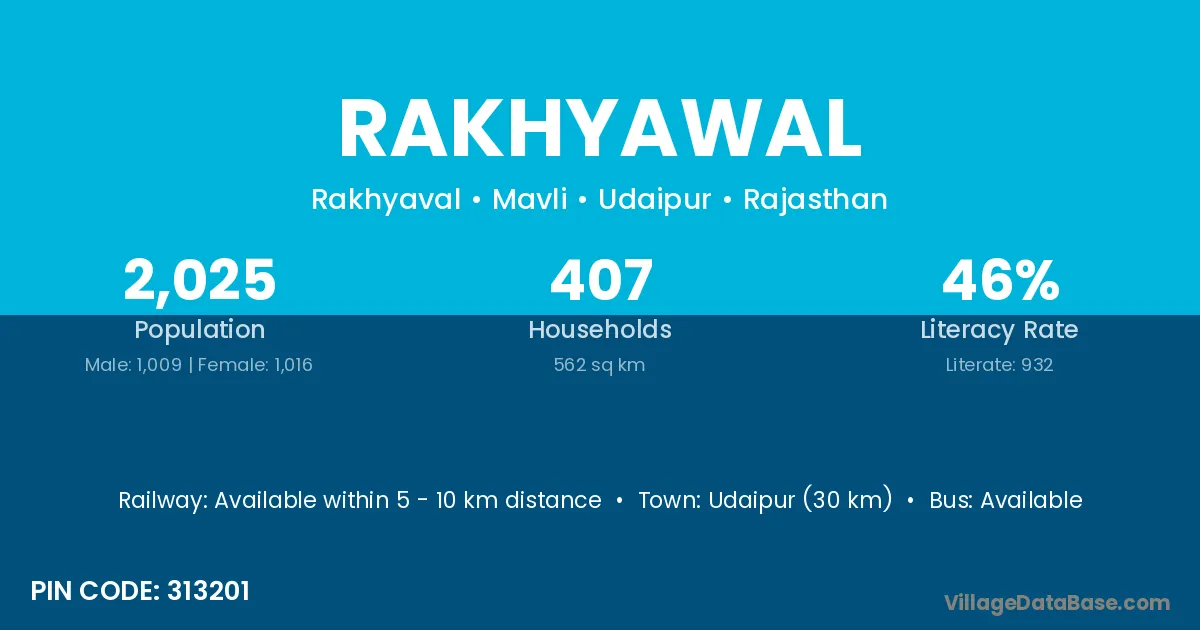 Udaipur (30 km) is the nearest town to Rakhyawal village for major economic activities and is located approximately 30 km away.