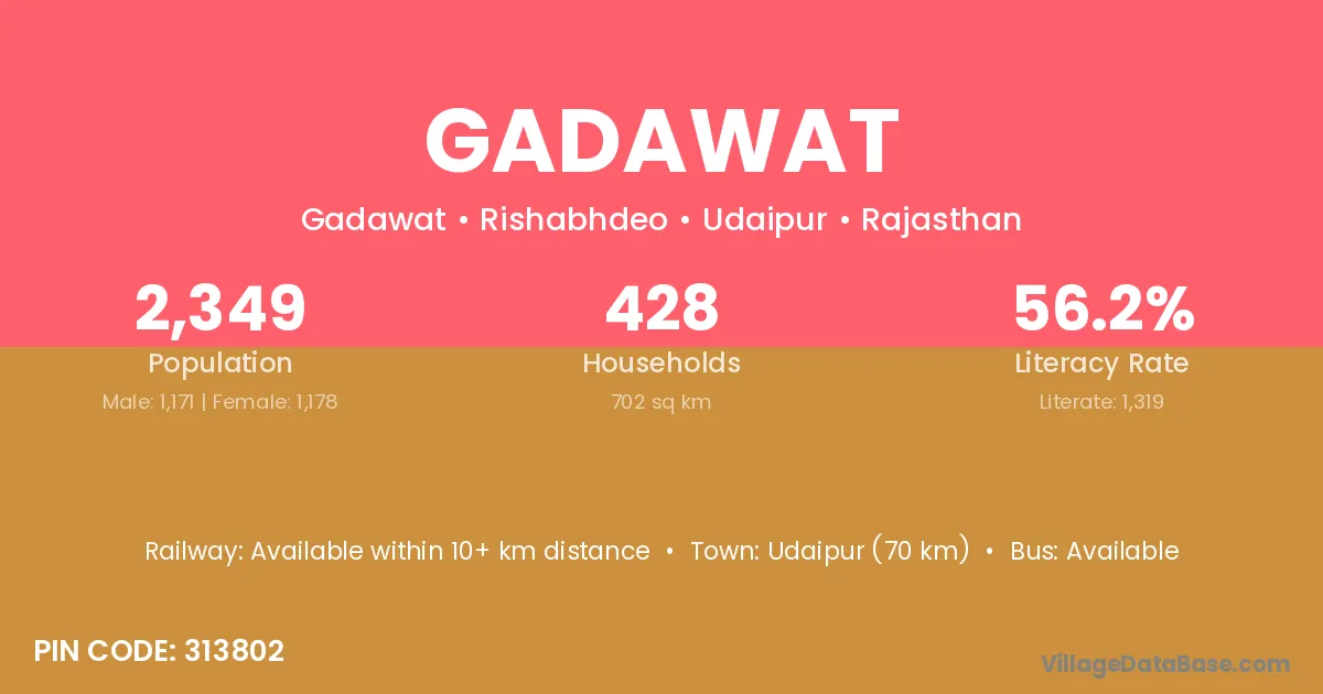 Udaipur (70 km) is the nearest town to Gadawat village for major economic activities and is located approximately 70 km away.