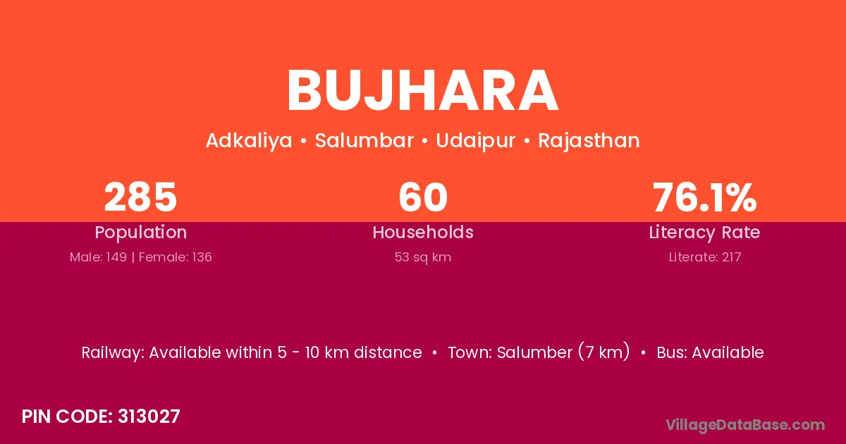 Salumber (7 km) is the nearest town to Bujhara village for major economic activities and is located approximately 7 km away.